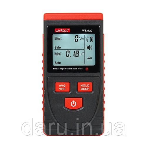 Детектор електромагнітного випромінювання WINTACT WT3120 призначений для вимірювання параметрів електромагнітного поля. Використовується для тестування та вивчення ситуації з електромагнітним випромінюванням у приміщенні та на вулиці. Прилад обладнаний вбудованим датчиком електромагнітного випромінювання, який може відтворювати значення випромінювання на цифровому РК-дисплеї. Ви можете зробити розумне оброблення або вжити ефективних заходів захисту від електромагнітного випромінювання відповідно до результатів тесту.